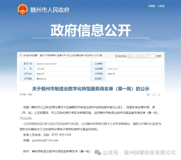 喜報(bào)!贛州網(wǎng)聯(lián)科技有限公司入選贛州市制造業(yè)數(shù)字化轉(zhuǎn)型服務(wù)商(第一批名單)!